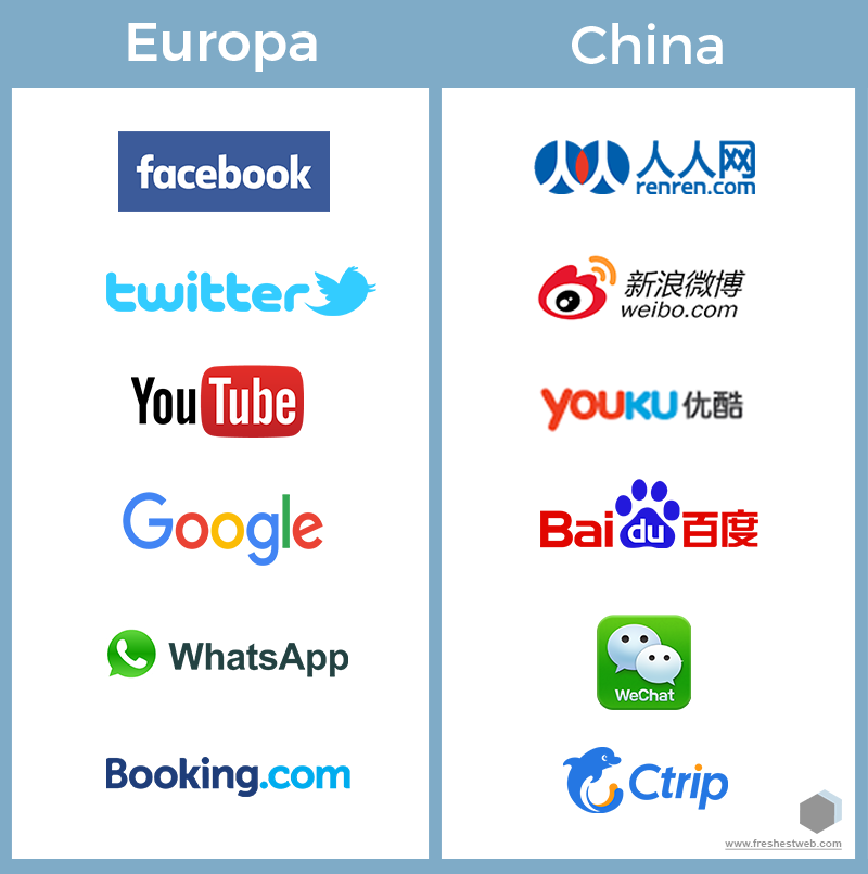 WeChat = Whatsapp+Facebook. Als Reiseplattform hat sich CTrip = booking.com / Expedia usw. sehr stark vom Rest abgehoben. Und auch Pinterest und Instagram Klone haben rasanten Zuwachs. Interessant auch zu wissen, das Twitter Pendant Weibo hat seit November 2016 auch beim Marktwert das Original bereits ĂĽberholt :)
